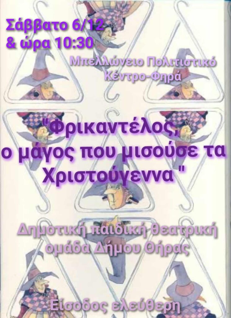 Τα τμήματα της παιδικής θεατρικής ομάδα του Δήμου Θήρας παρουσιάζουν δύο μοναδικές χριστουγεννιάτικες παραστάσεις και προσκαλούν μικρούς και μεγάλους το Σάββατο 6 Δεκεμβρίου 2025, στο Μπελλώνειο Πολιτιστικό Κέντρο.