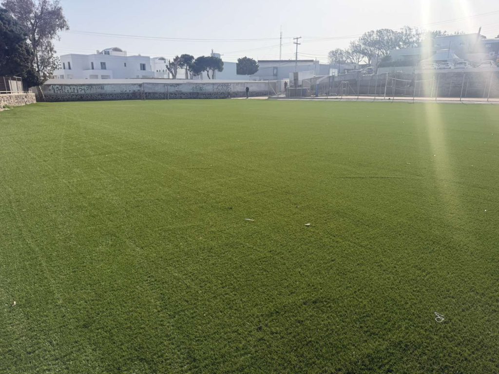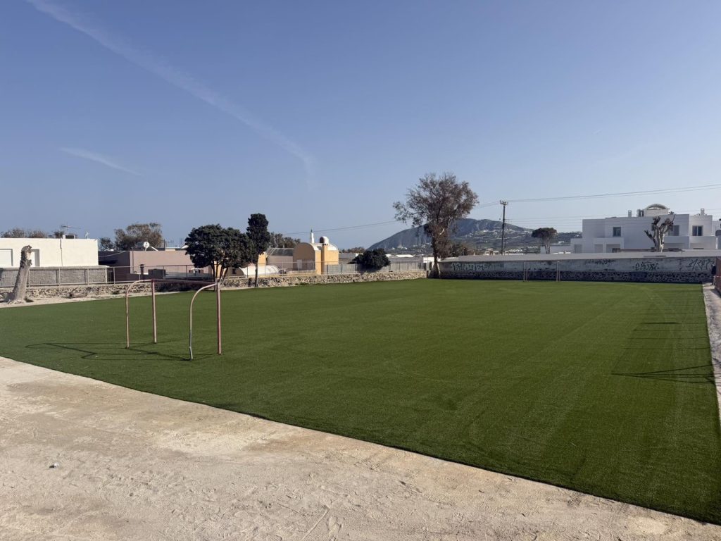 Συνεχίζοντας τις παρεμβάσεις για τη βελτίωση των αύλειων χώρων των σχολικών μονάδων, ολοκληρώθηκε η τοποθέτηση νέου χλοοτάπητα στο γήπεδο ποδοσφαίρου του Γυμνασίου Φηρών, συνολικής επιφάνειας 1.500 τετραγωνικών μέτρων.